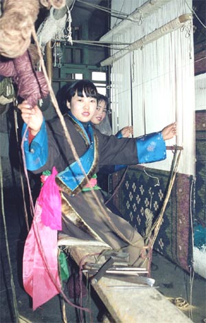 チベット絨毯の有名産地 青海省青蔵高原 青海省青蔵高原中国青海省青蔵高原は、その置かれた独特の地理環境と歴史から、豊かなチベット文化を育んできました。チベット絨毯はこのチベット文化の影響を色濃く受け、民族的風格をもって発展してきました。記録によると、清朝咸豊時代、青蔵高原のラマ教の高僧がチベットの絨毯を皇帝に進貢したことが記されています。現在は、新しいデザインを取り入れて織り継がれています。